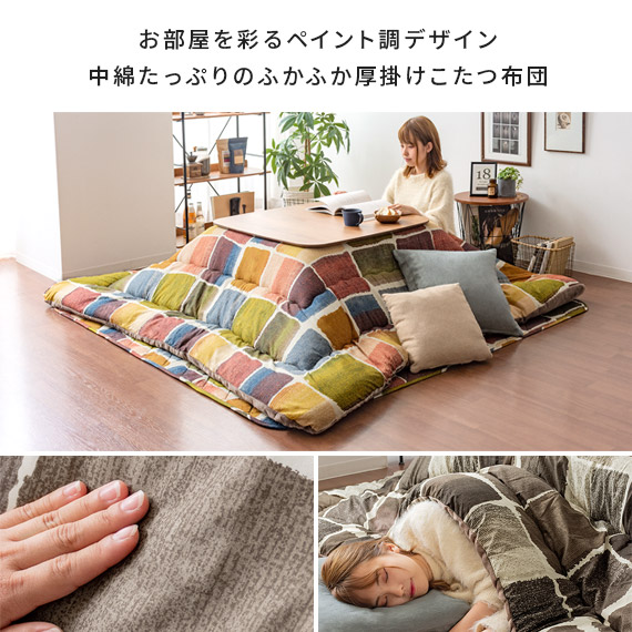 こたつ布団 長方形 こたつ 北欧 おしゃれ あったか 厚掛け ふかふか フランネル コタツ布団 カジュアル ナチュラル かわいい シック 東レ マッシュロン綿 厚掛けこたつ布団 MOVE〔ムーヴ〕205×245cm 長方形タイプ
