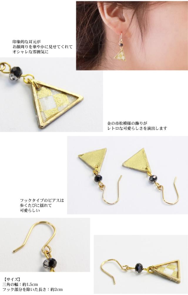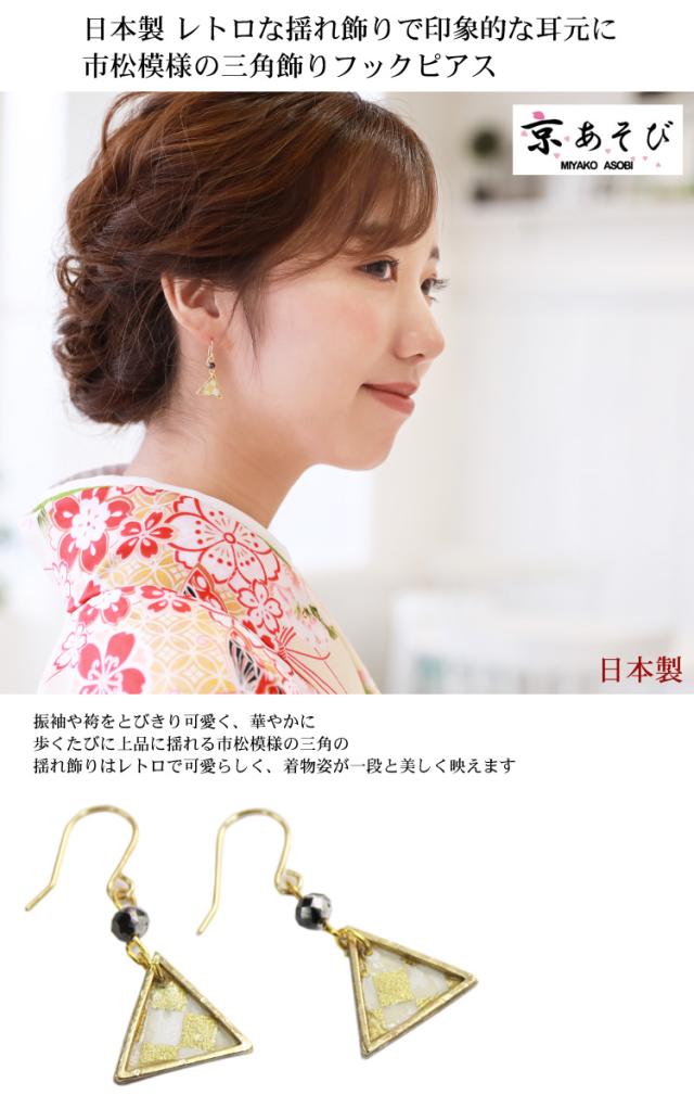 京あそび 日本製 三角フックピアス 卒業式 袴 成人式 結婚式 振袖 フックピアス ピアス アクセサリー 和風 和装 レトロ シンプル ブライダル 金 白 MIYAKO ASOBI ピアスキャッチ付き
