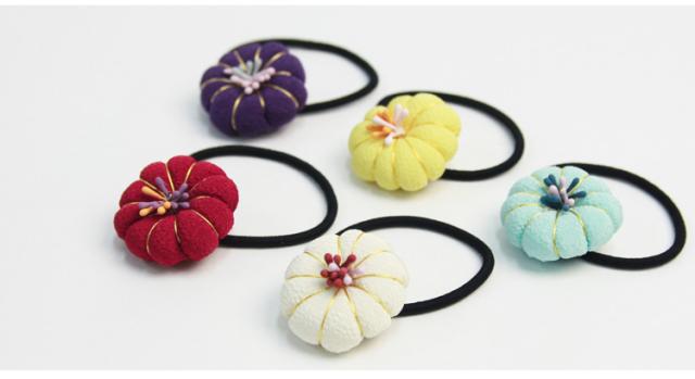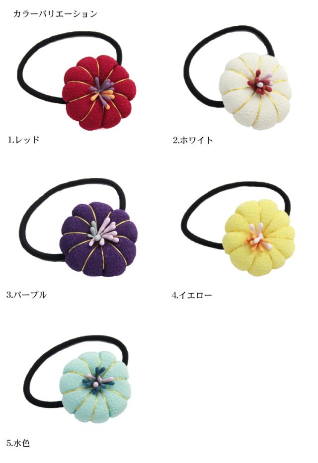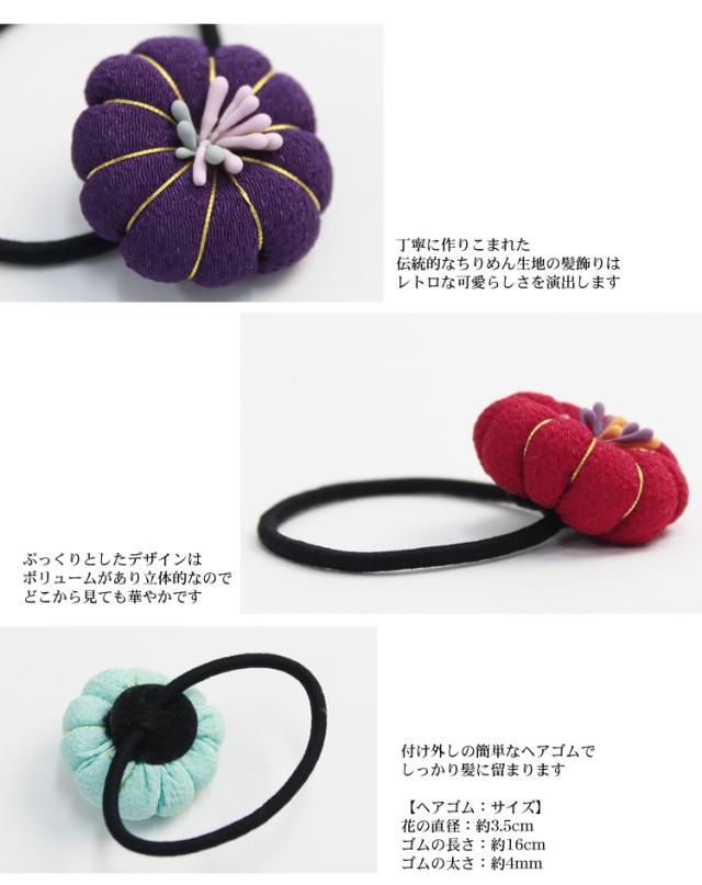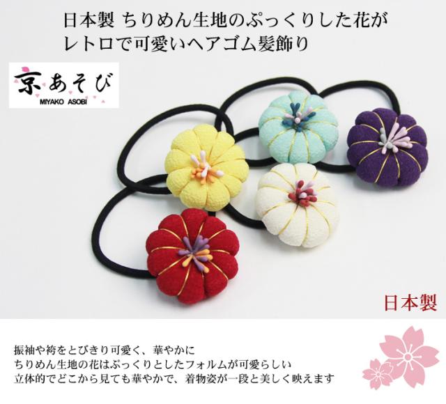 京あそび 日本製 ちりめんぷっくり花ヘアゴム髪飾り 卒業式 袴 成人式 結婚式 振袖 ヘアゴム 大人っぽい シンプル おしゃれ ヘアアクセサリー 花 和装 レトロ ブライダル 赤 白 紫 黄色 水色 MIYAKO ASOBI
