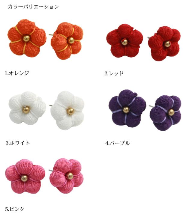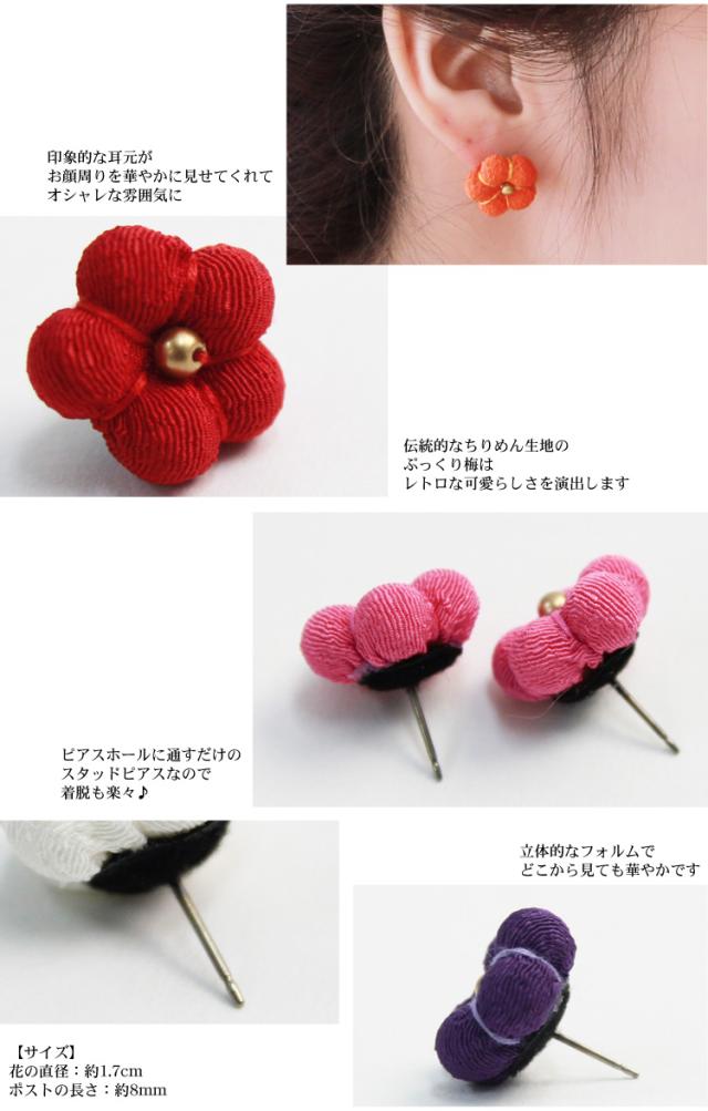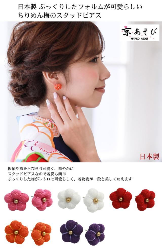 京あそび 日本製 ちりめんぷっくり梅のスタッドピアス 卒業式 袴 成人式 結婚式 振袖 スタッドピアス キャッチ ピアス アクセサリー 和風 和装 レトロ シンプル 花 ブライダル オレンジ 赤 白 紫 ピンク MIYAKO ASOBI ピアスキャッチ付き