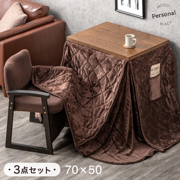 パーソナルこたつ 3点セット 掛布団 チェア 3段階 高さ調節 ハイタイプ 一人用 こたつ 60×50 省スペース コンパクト 長方形 こたつセット PC パソコン こたつデスク 高さ調整 1人用 一人暮らし 小型 リビング ダイニング テレワーク おしゃれ【商品番号:21300132】