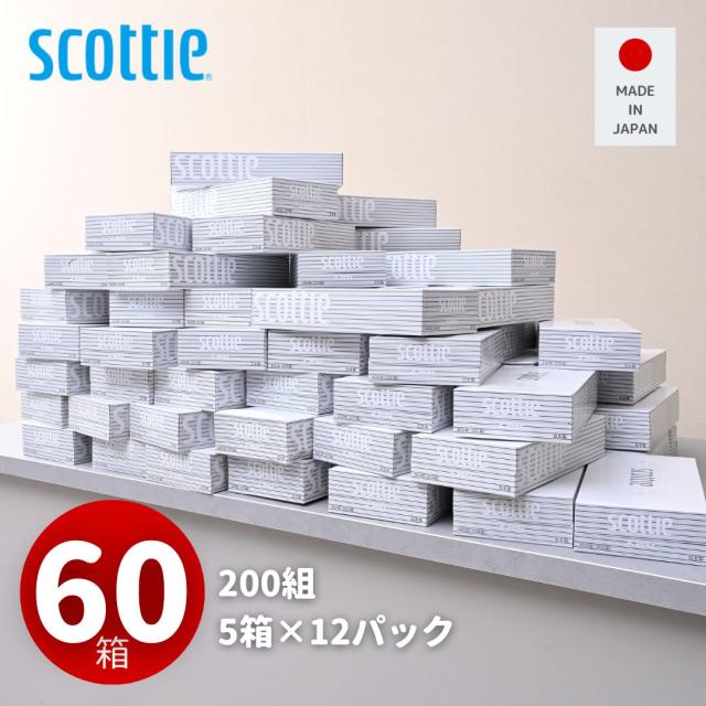 スコッティ ティッシュペーパー 200組 5箱×12パック(60箱) ティシュペーパー まとめ買い ケース販売 ボックスティッシュ 日用品 ティッシュ 日本製紙クレシア 【送料無料】