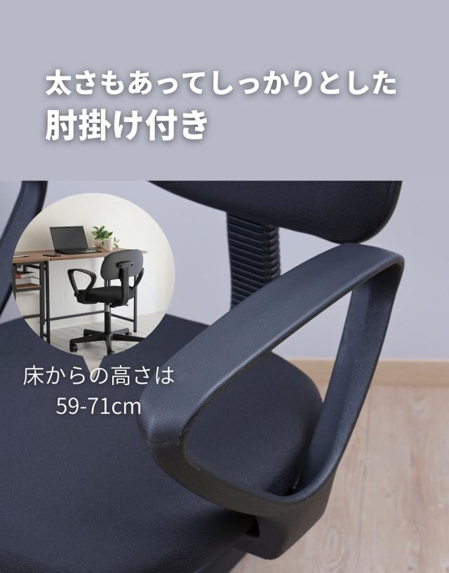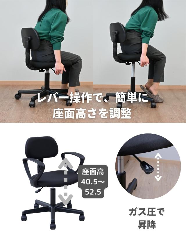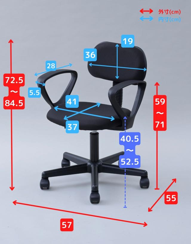 | 商品説明 | ●機能を絞った、お手頃タイプのデスクチェア ●お部屋を圧迫しないコンパクトタイプ ●座部・背部には薄手のウレタンクッション入り ●張地はポリエステル製 ●しっかりとしたアームレスト付き ●レバーで簡単に座面の高さ調節可能 ●5つのキャスター付き(ストッパーなし) ●工具不要(六角レンチ付属) ●座面高さ: 40.5-52.5cm ●座面サイズ:幅(最大)41×奥行37cm ●背もたれサイズ:(最大)幅36×高19cm ●肘掛け:幅5.5 長さ28、床からの高さ59-71cm ●荷重の目安:静止90kg ※2024年2月20日よりリニューアルして販売;サイズとカラーの変更 ■従来品サイズ: 幅52×奥行53×高さ72-84cm ■リニューアル品サイズ: 幅57×奥行55×高さ72.5-84.5cm |