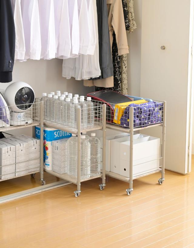 | 商品説明 | ●※2024年11月11日より、新タイプが追加となります。 ●クローゼットの服の下や奥行きの浅い押入れを仕切って使える収納ラック ●段差も超えられるキャスターで奥のものも取り出しかんたん ●ティッシュやペットボトルなどストック品の収納にもぴったり ●何が入っているかわかる大きなメッシュ ●長いメッシュ部分は取り外し可能 ●フレームにはズレ防止のシリコンパーツ付き ●棚板取り外しもできて、長物の収納にも便利 ●上段の棚板が5.5cm間隔3、段階で調整可能 ●棚板を外したときの内寸 高さ: 52.5 奥行き52.5cm ●ネジ穴隠しの樹脂キャップ付き ●床から下部フレームまでの高さ: 8.5cm ●キャスターのうち2つはストッパー付き ●棚板耐荷重: 1段 15kg ●棚板サイズ:幅38 奥行52cm ●上部内寸:幅34.5 奥行54.5cm |