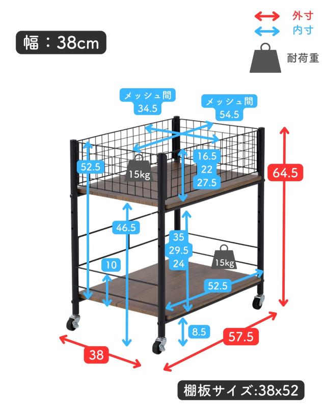 | 本体サイズ | 幅38×奥行57.5×高さ64.5cm 重量7kg |