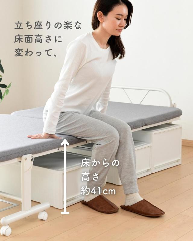 折りたたみベッド セミダブル リクライニング 白 ハイタイプ マットレス付き 収納 折り畳みベッド 折りたたみベット 簡易ベッド 折りたたみ 折り畳み 新生活 おしゃれ 山善 YAMAZEN 【送料無料】