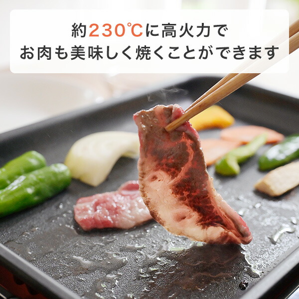 - 二人で焼肉&たこ焼きやるにはちょうど良い大きさで気に入ってます!大きいサイズのは持っているのですが二人で使う時は出したり片付けるのが面倒くさいので購入しました。温度調整も出来るのでとても良いです。