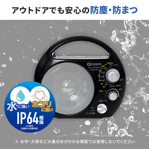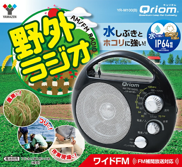野外ラジオ ポータブルラジオ (AM/FM) 防塵・防まつ仕様 YR-M100(B) 農業ラジオ 豊作ラジオ 屋外 野外 乾電池 コードレス ラジオ コンパクト 軽量 防災 災害対策 台風 山善 YAMAZEN キュリオム Qriom 【送料無料】