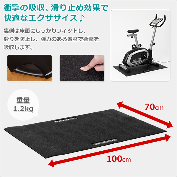 - エアロバイクの下に敷いています。 用途的には問題ありません。 個人的にはもう少し厚みと質感が欲しいところです。