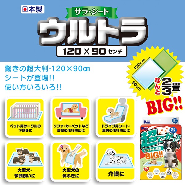 ペットシーツ 超でかっ!! サラ・シート 厚型 BIG!! 超大判 120×90cm 2枚入り×12セット(24枚) PUW-607 第一衛材 ピーワン P.one