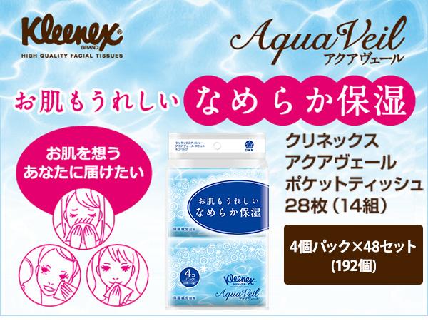 クリネックス アクアヴェール ポケットティッシュ 28枚(14組) 4個パック×48セット(192個) 47176 ティシュー ティッシュ ティッシュペーパー ポケットティシュー まとめ買い 日本製紙クレシア 【送料無料】