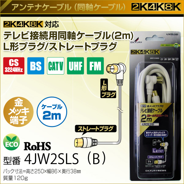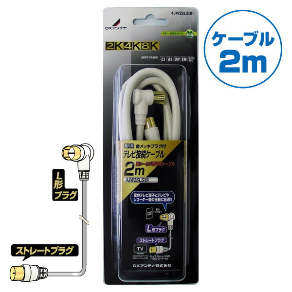 DXアンテナ テレビ接続用同軸ケーブル (2m) L形プラグ/ストレートプラグ 4JW2SLS(B) アンテナケーブル 同軸ケーブル AVケーブル アクセサリ ケーブル 4K対応 8K対応 L形 ストレート ケーブル 【送料無料】