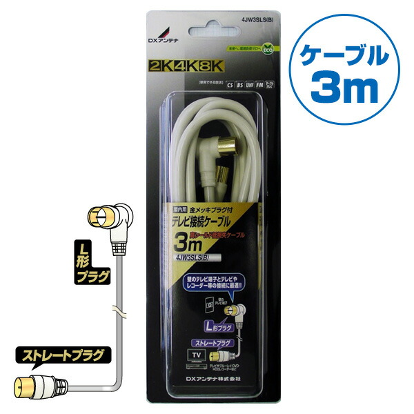 DXアンテナ テレビ接続用同軸ケーブル (3m) L形プラグ/ストレートプラグ 4JW3SLS(B) アンテナケーブル 同軸ケーブル AVケーブル アクセサリ ケーブル 4K対応 8K対応 L形 ストレート ケーブル 【送料無料】