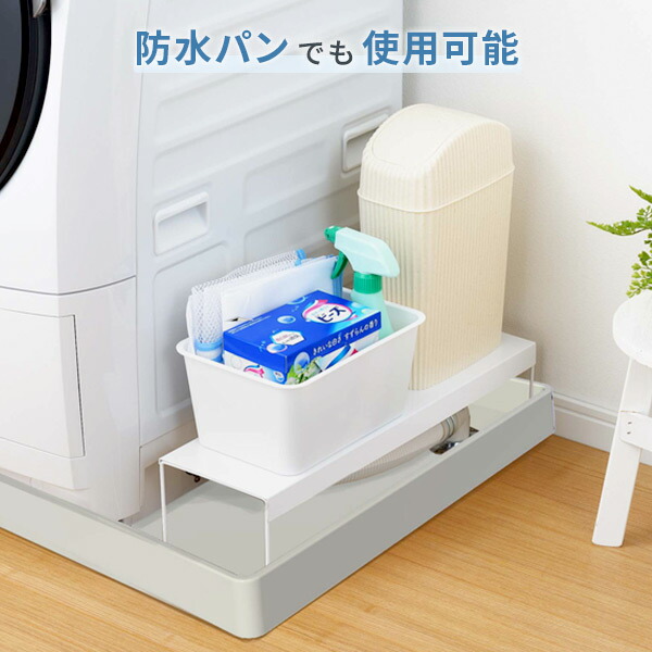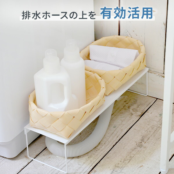 - 洗濯機のホースの所にぴったりおさまりスッキリしたおかげで洗剤などが置けました。
