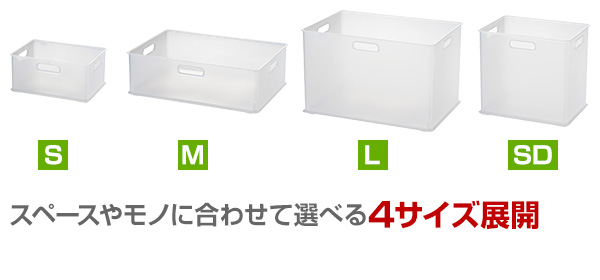 | 商品説明 | ●すっきり半透明な、無地の収納ケース ●カラーボックスやラックにぴったり、広い空間を仕切って使いやすくするアイテム ●すっきり無駄のない、まっすぐな角型ボックス ●スペースやモノに合わせて選べるセット企画 ●ぴったりフィットしてずれにくい積み重ね方式 ●三面持ち手付きで、出し入れや持ち運びがラクラク ●Mサイズ4個セット ●内寸:幅37 奥行24.7 深さ11.3cm |