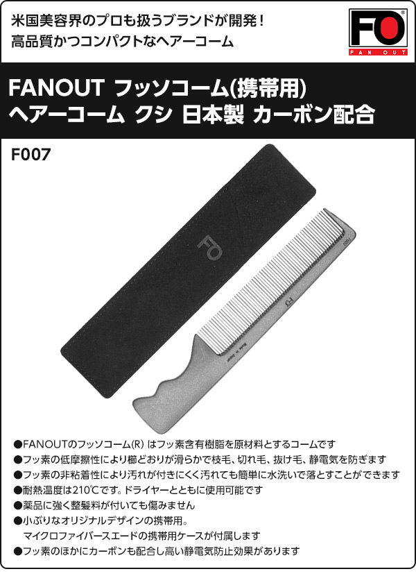 FANOUT フッソコーム(携帯用) ヘアーコーム クシ 日本製 カーボン配合 F007 カーボンブラック フッソコーム フッ素 コーム くし クシ 日本製 ヘアブラシ ヘアケア 携帯 コンパクト ファンアウト(FANOUT) 【送料無料】