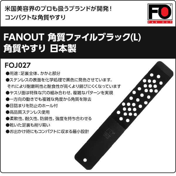 FANOUT 角質ファイルブラック(L) 角質やすり 日本製 FOJ027 ブラック 角質ケア 足裏ヤスリ 角質ヤスリ 角質ファイル 角質除去 つるつる 足 角質取り かかと おしゃれ 日本製 ファンアウト(FANOUT) 【送料無料】