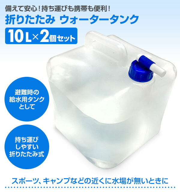 折りたたみ ウォータータンク 水缶 コック付き 10L×2個セット YWT-10*2 ウォータータンク 折りたたみ コック付き 水缶 災害 避難 防災 水くみ 水汲み レジャー アウトドア 給水 給水袋 山善 YAMAZEN 【送料無料】