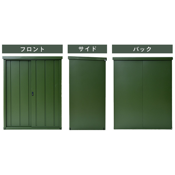 | 商品説明 | ●奥行ゆったり仕様でタイヤも収納できる大容量のスチール製収納庫 ●奥行(内寸)を通常タイプよりも+30cm広い64.5cm確保 ●日用品の収納だけでなくキャンプ用品などの収納にも最適 ●お庭のグリーンにマッチするカーキ色 ●サビに強い:ハイテンション亜鉛メッキ鋼板採用で硬度UP ●扉に吊り戸式を採用し、開閉がスムーズ ●収納物が出し入れしやすい下部レール部フラット仕様 ●安心の専用鍵付き ●収納部内寸:幅116×奥行64.5×高さ139cm ●可動棚1枚付属 ●可動段数:13段 ●耐荷重:(底板)約100kg、(棚板)約30kg ※完全防水仕様ではないため、吹き込みなどによる雨水侵入のおそれがあります ※2024年8月よりクラウドブルーを追加しました |