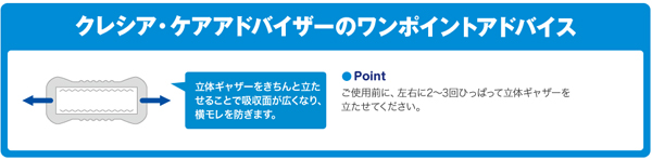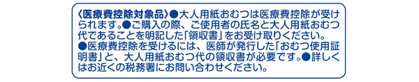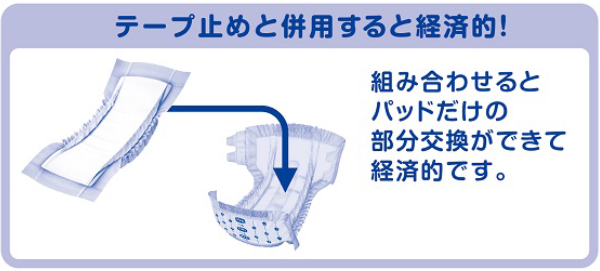 | 材質 | 表面材:ポリオレフィン系不織布 吸水材:綿状パルプ/吸収紙/高分子吸水材 防水材:ポリエチレンフィルム 止着材:ポリプロピレン 伸縮材:ポリウレタン 結合材:ホットメルト粘着材 |