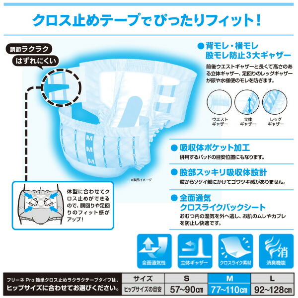フリーネPro 大人用 紙おむつ 簡単クロス止め ラクラクテープタイプ M 30枚×3(90枚) DCT-178 大人用紙おむつ 大人用おむつ 介護用おむつ 大人用オムツ 紙オムツ おむつ オムツ 失禁用品 第一衛材 【送料無料】