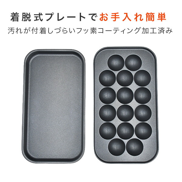 ホットプレート 着脱式 たこ焼きプレート&平面プレート 2枚組 YOJ-W160(H) たこ焼き器 たこ焼き機 着脱式ホットプレート 16穴 スリム コンパクト 一人暮らし 新生活 軽量 シンプル おしゃれ 山善 YAMAZEN 【送料無料】