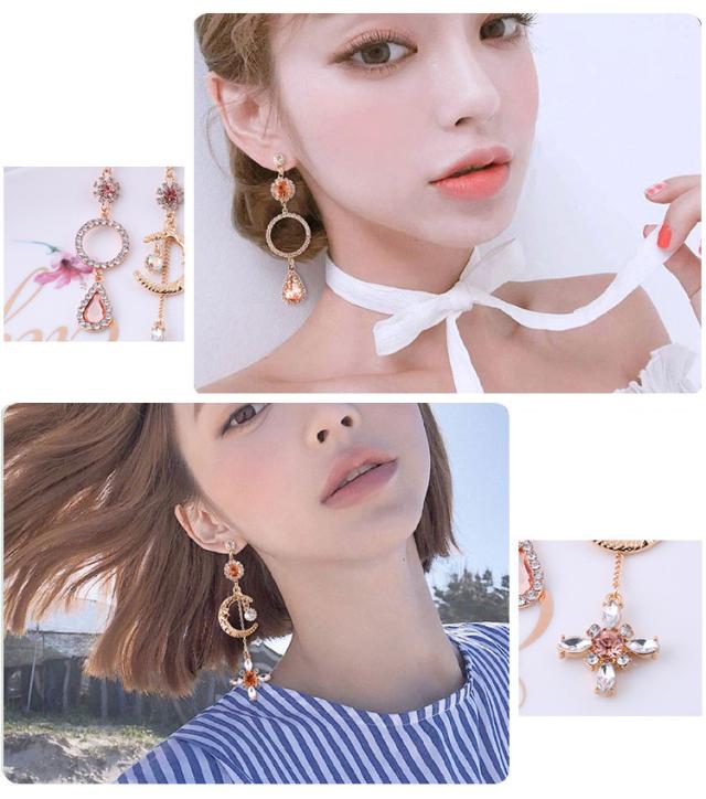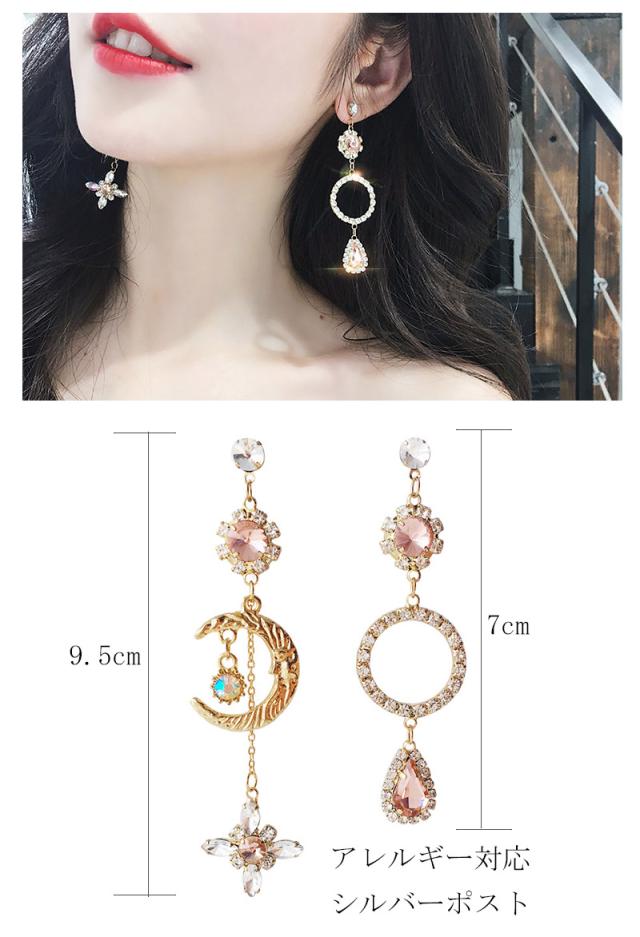ピアス レディース ロングピアス 揺れる 月星モチーフ アシンメトリー アレルギー対応 大人 可愛い