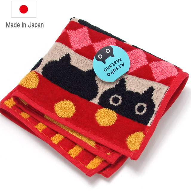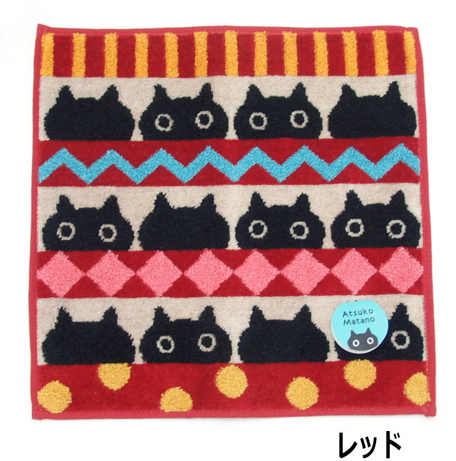 タオルハンカチ 12匹のMEME 黒猫 マタノアツコ またのあつこ 今治 綿100% 日本製 高品質 手拭 ハンドタオル レッド グリーン パープル 猫柄 猫雑貨 猫グッズ 女性 レディース かわいい おしゃれ ギフト プレゼント 【 誕生日 】