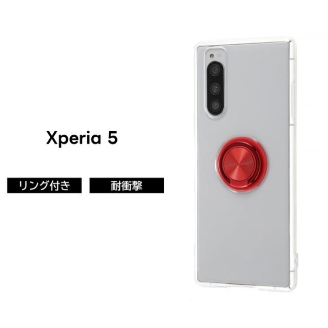 Xperia5 ケース 耐衝撃 保護 シンプル 背面クリア 透明 リング付き 軽い ソフト TPU SO-01M SOV41 901SO J9260 SIMフリー docomo au softbank レッド