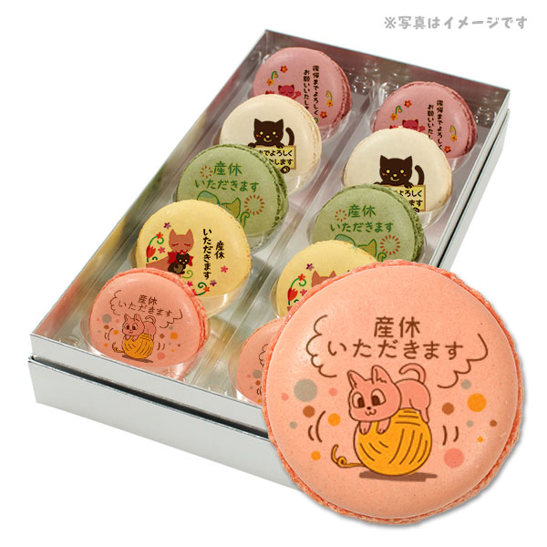 産休 お菓子 あいさつ 人気の5つのフレーバーで美味しい ネコのイラスト メッセージマカロン 10個セット 手作り スイーツ ギフト