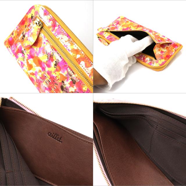 長財布 L字ファスナー 薄い 手描きマーブル模様 メタリック箔押し ゴートレザー 山羊革 本革 日本製 レディース oeillet ウイエ Nebuleuse