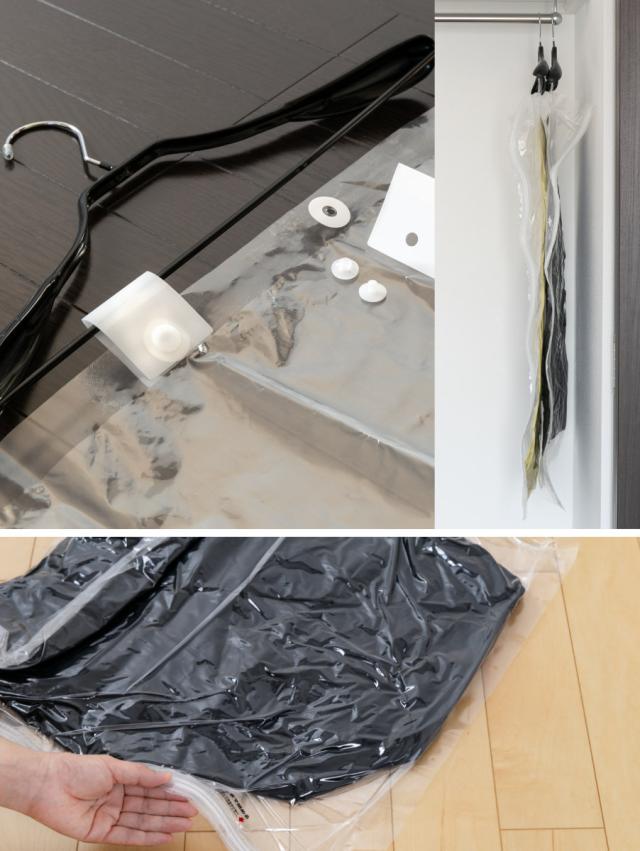 ●吊るせる圧縮袋でクローゼット内の収納スペースが広がります。