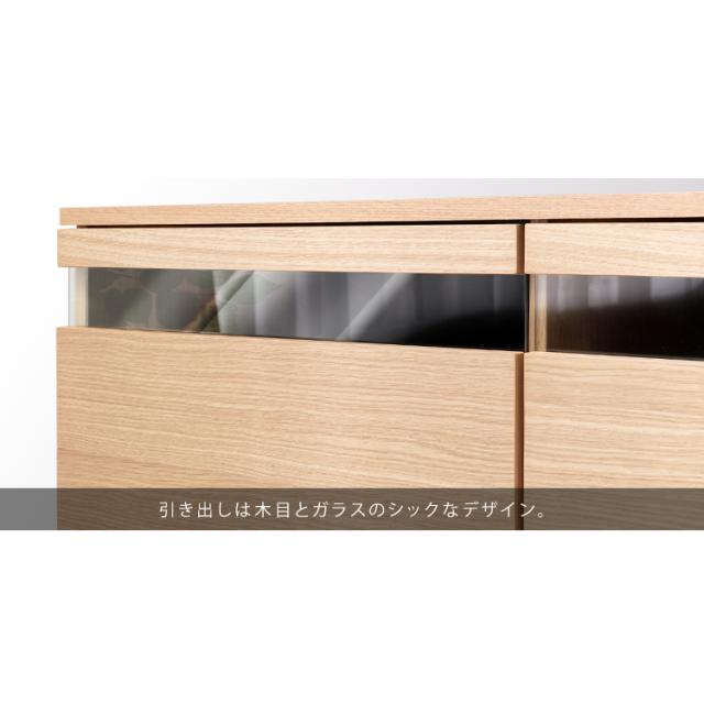 引き出し上部にはガラスを採用しモダンな雰囲気をプラス。