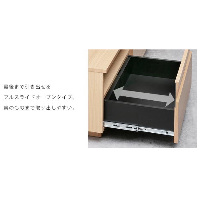 最後まで引き出せ、奥のものまで取り出しやすいフルスライドオープンタイプです。