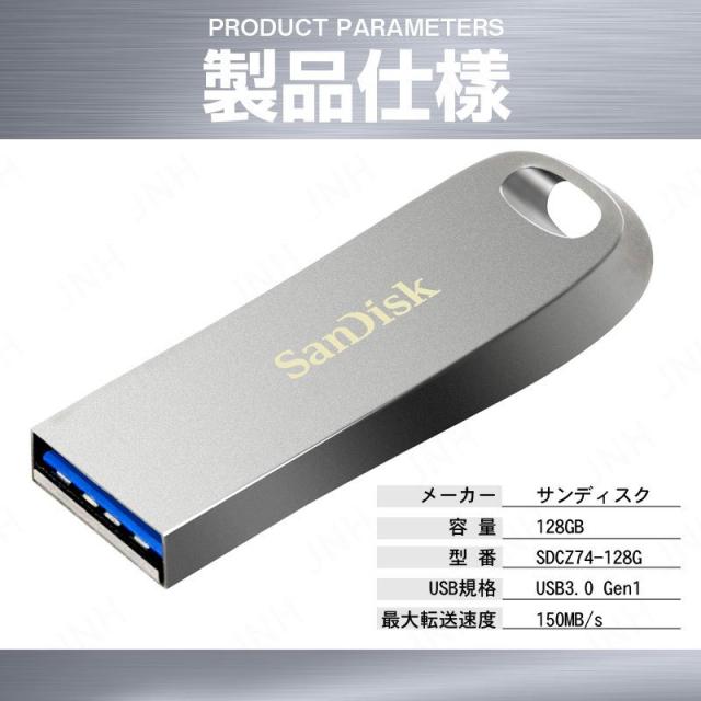 USBメモリー 128GB SanDisk サンディスク USB3.1 Gen1対応 Ultra Luxe 全金属製デザイン R:150MB/s 超高速 海外パッケージ ポイント消化