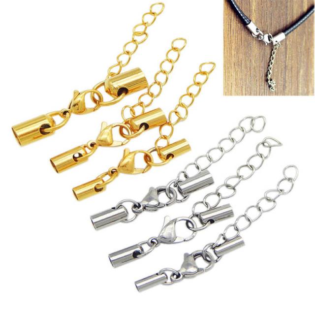 [太さ 1mm用 2mm用 3mm用 4mm用 5mm用 6mm 丸ひも用] チェーンチャーム付き ワイヤー用 革紐用 ロープ用 コード用 カニカン エンドステンレスパーツ 1セット販売 ゴールド 金色 シルバー 銀色 ブレスレット ネックレス 止具 留め具 金具 修理 DIY 手作り ハンドメイド