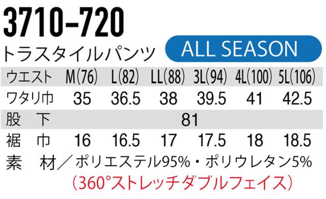 寅壱 トラスタイルパンツ 3710-720 オールシーズン