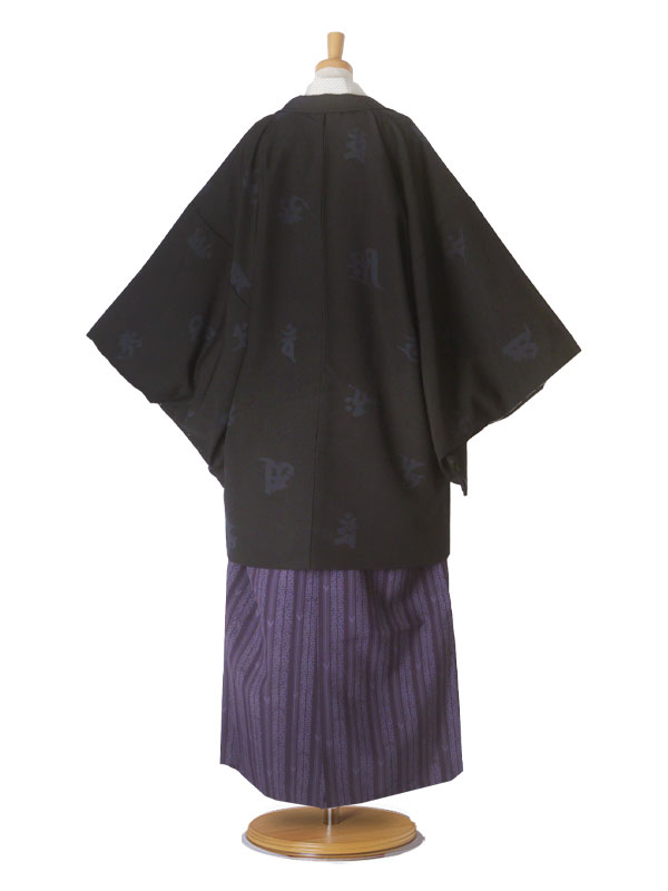 レンタル 男性 羽織 袴 フルセット 貸衣装 メンズ 男子 男着物 成人式 結婚式 貸衣装 クール系 黒 ブラック Lサイズ