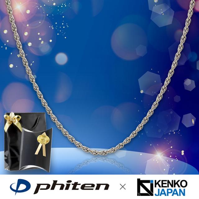 【送料無料】【ファイテン×ケンコージャパン コラボ 限定品】 チタン ネックレス チェーン ダブルあずき 幅1.7mm 40cm 45cm 50cm 55cm 60cm