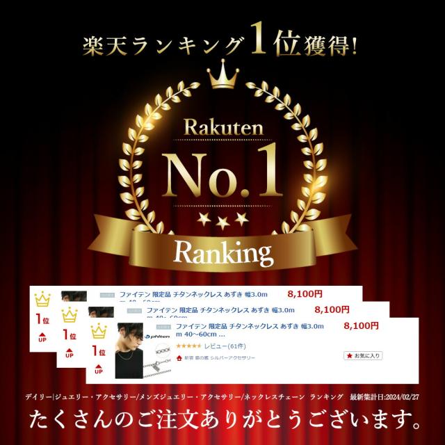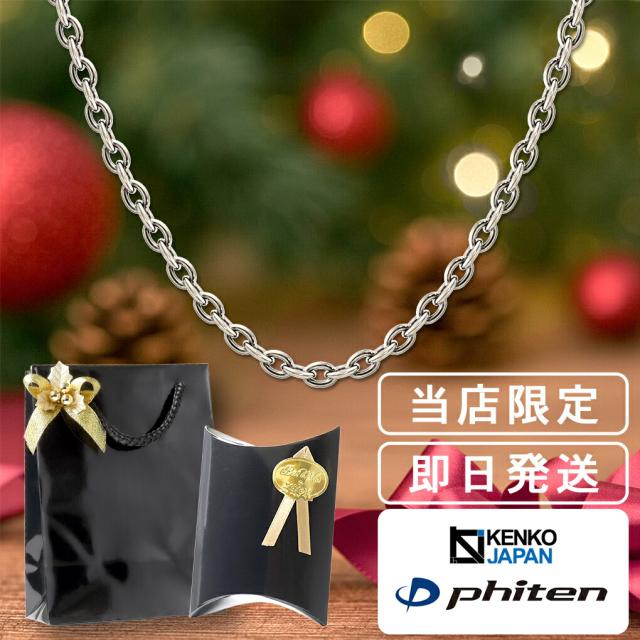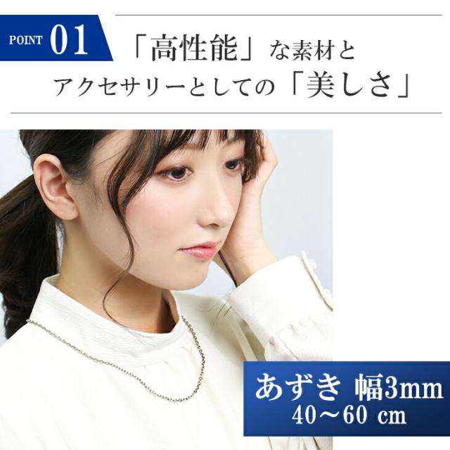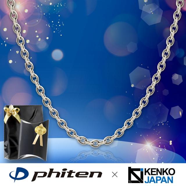 【送料無料】【ファイテン×ケンコージャパン コラボ 限定品】 チタン ネックレス チェーン あずき 幅3.0mm 40cm 45cm 50cm 55cm 60cm