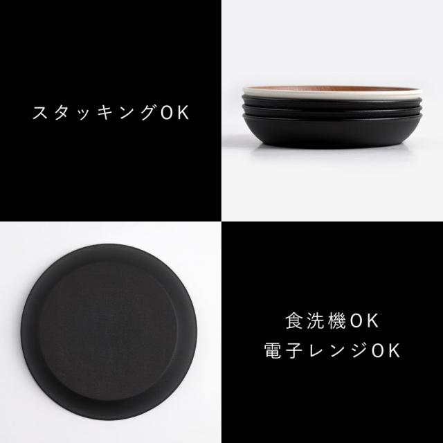上質さを感じる、シンプルな白と黒のモノトーン。モダンで洗練されたデザインは、料理を引き立て、食卓をすっきりと整えてくれます。使いやすいサークルプレート。メイン料理や、家族分の揚げ物や炒め物の盛り皿としても便利な直径17.8cm。お料理して盛り付けるのにもテンション上がるプレートです。