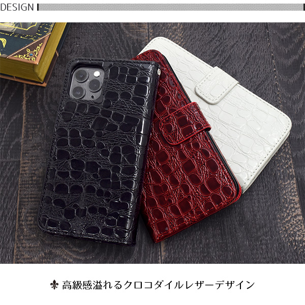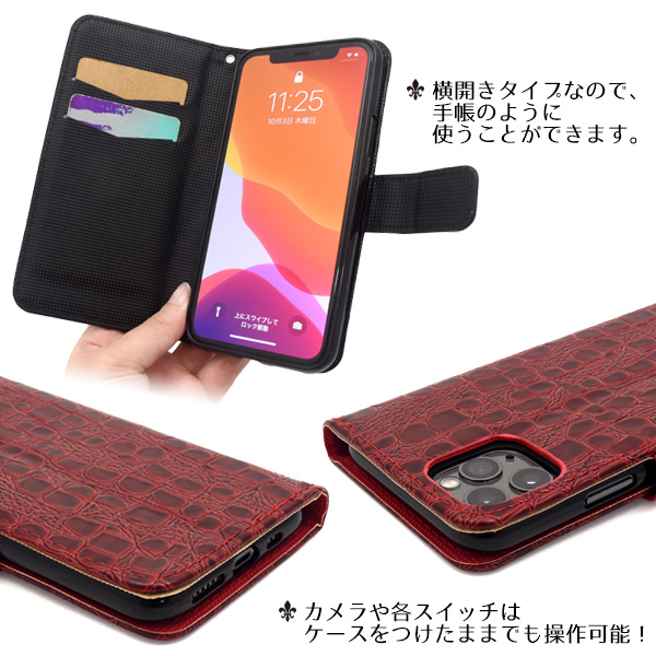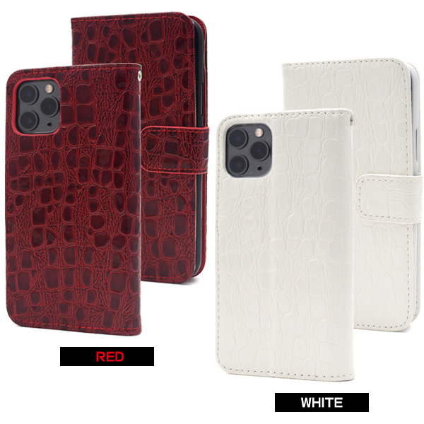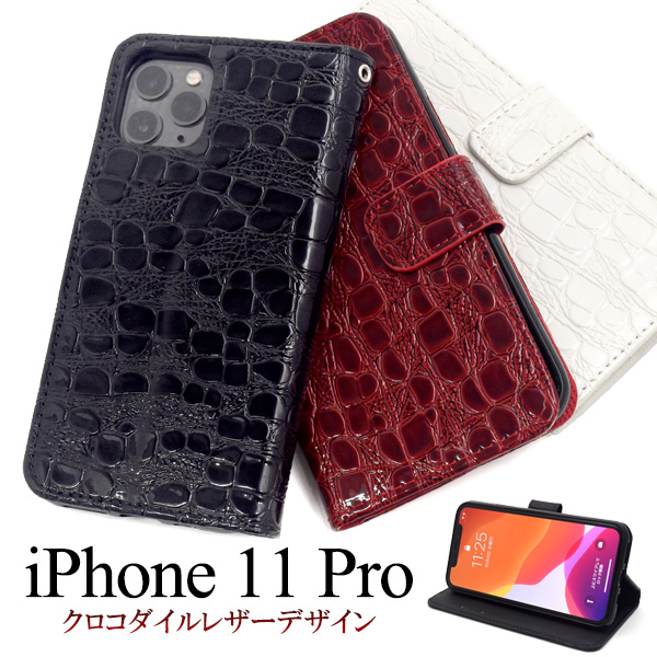 iPhone 11 Pro用 クロコダイルレザーデザイン手帳型ケース