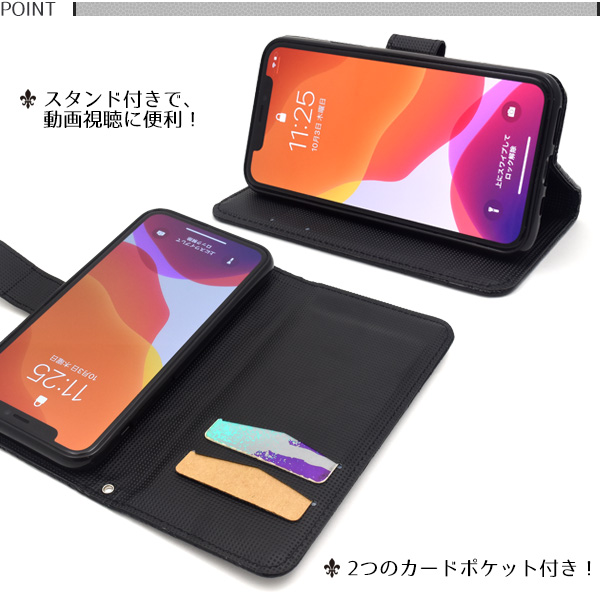 | 高級感溢れるクロコダイルレザーデザインの手帳型ケース。 衝撃やキズなどからスマートフォンを守ります。 内部はソフトケースなので着脱が簡単です。 背面を折り返すとスタンドとして使用できるので、動画視聴に便利です。 横開きタイプなので、手帳のように使うことができます。 落下防止に最適なストラップホール付きです。 また、内側に2つのカードポケットが付いています。 ※スマートフォンは付属しません。 ※ライセンス商品ではありません ※カードは付属しません。 ※デザイン、色味は画像と異なる場合がございます。 | ||||||||||||||