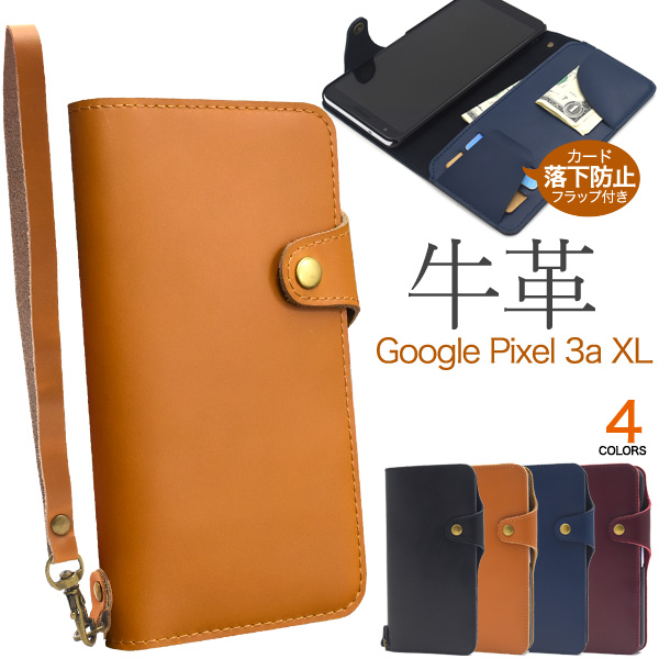 スマホケース Google Pixel 3a XL用 牛革手帳型ケース ストラップ付 グーグルピクセル 3a XL