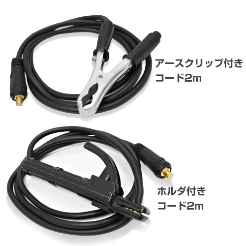 アースクリップ付きコード2m・ホルダ付きコードは約2mと作業性のある長さで、本体から離れた位置でも作業が楽に行えます。