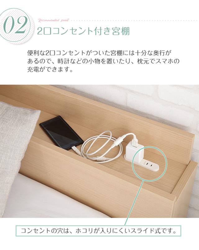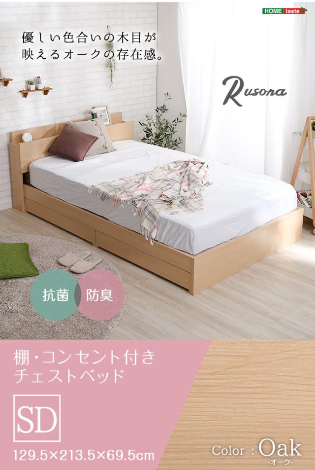 棚 コンセント付き チェスト ベッド フレーム SDサイズ Rusona ルソナ 新生活 引越し 家具 北海道 沖縄 離島は別途送料見積もり メーカーより直送します STL-SD-OAK