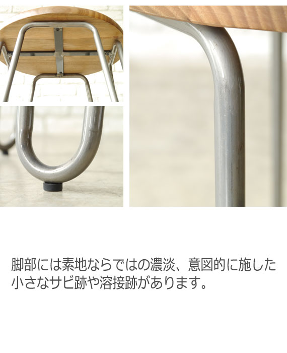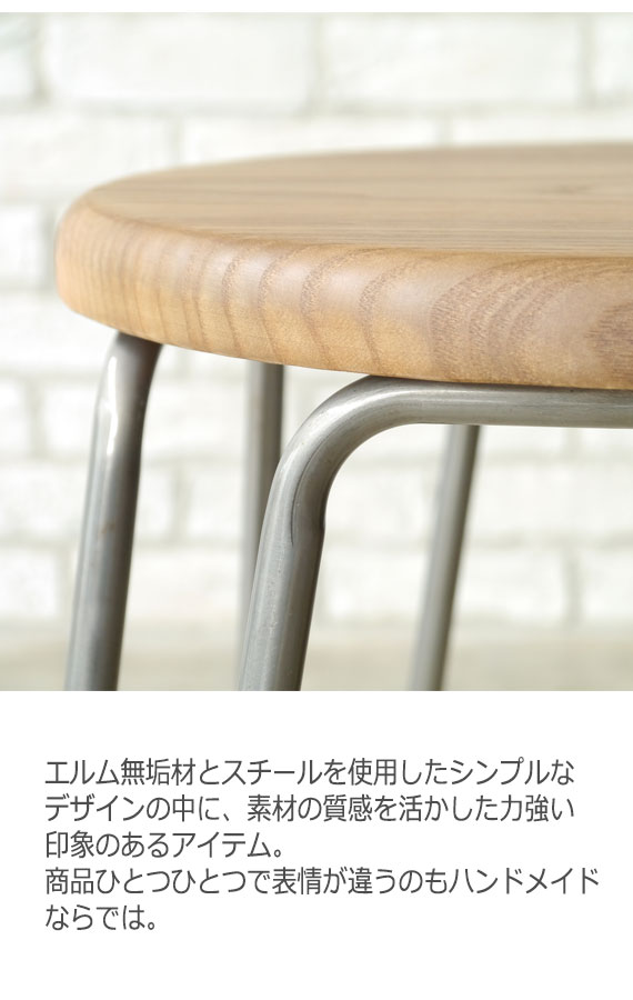 エルム無垢材とスチールを使用したシンプルなデザインの中に、素材の質感を活かした力強い印象のあるアイテム。