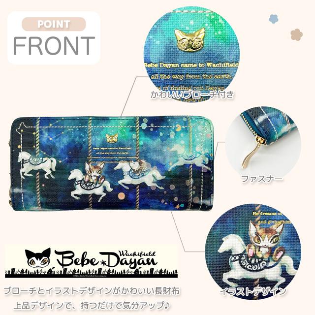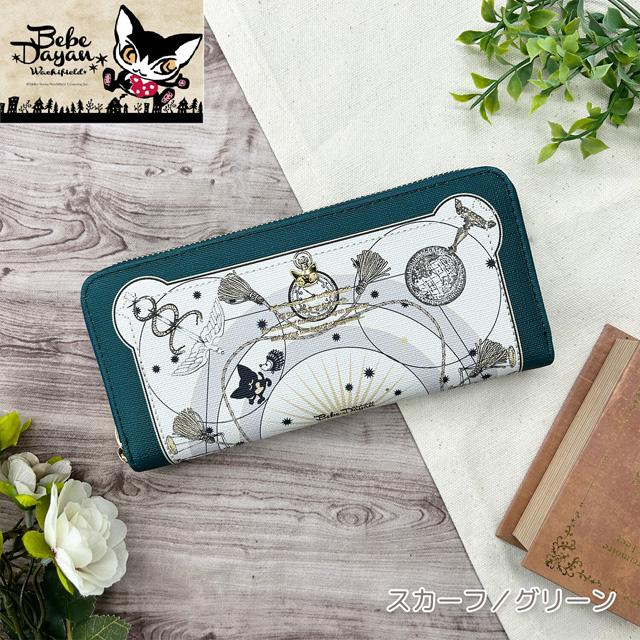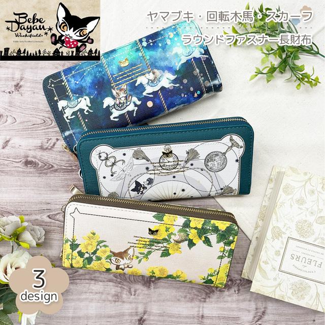 財布 猫 猫柄 レディース 長財布 ラウンドファスナー べべダヤン ヤマブキ 回転木馬 スカーフ 合皮 ポケット 大容量 かわいい おしゃれ ギフト プレゼント【 誕生日 】