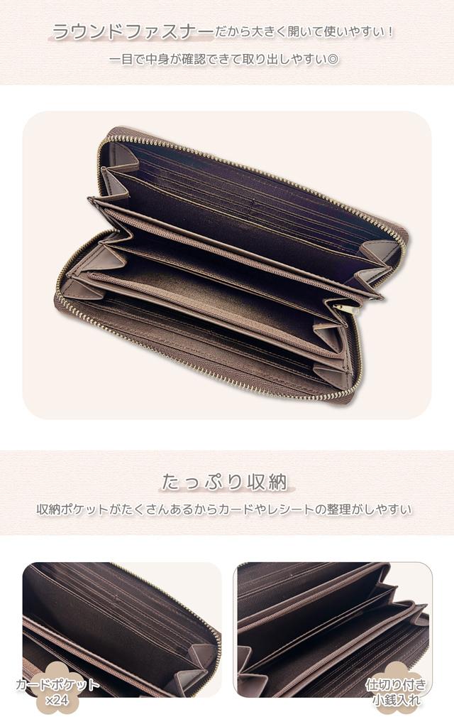 ■内側仕様:札入れ×3、ファスナー小銭入れ×1、カードポケット×24、フリーポケット×2