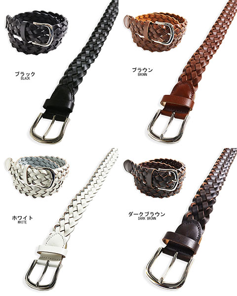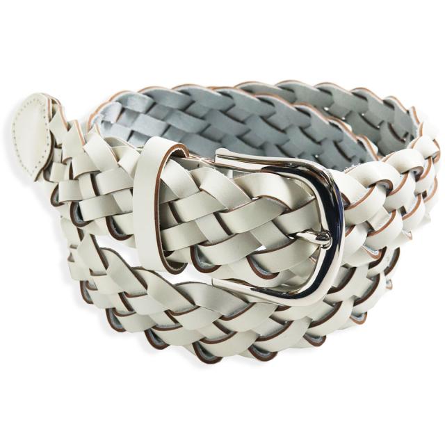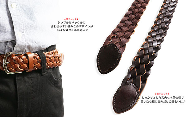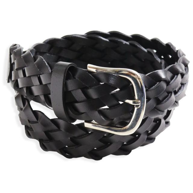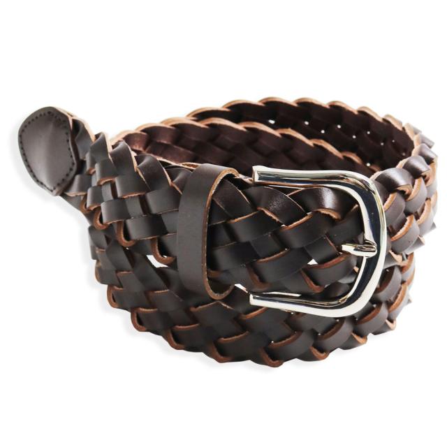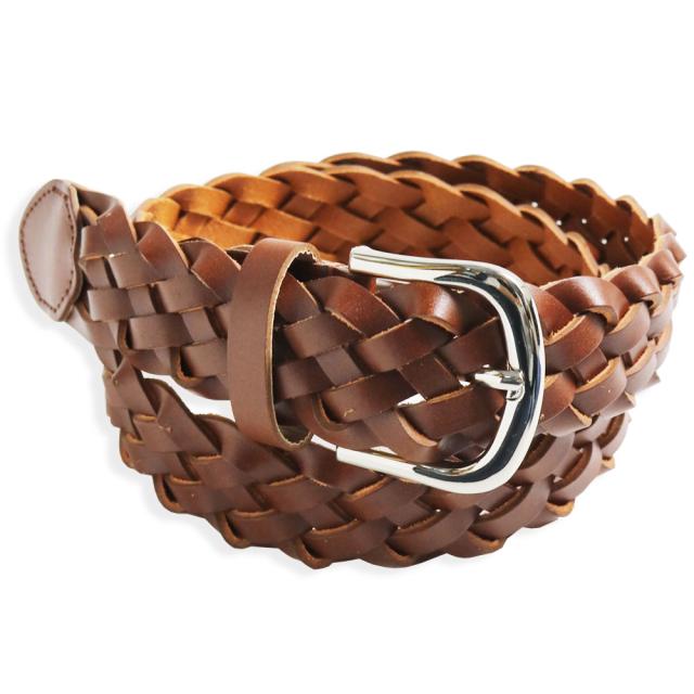 質感漂う厚手の本革を丁寧な作業で編み込んだ本格派の編みベルトです
